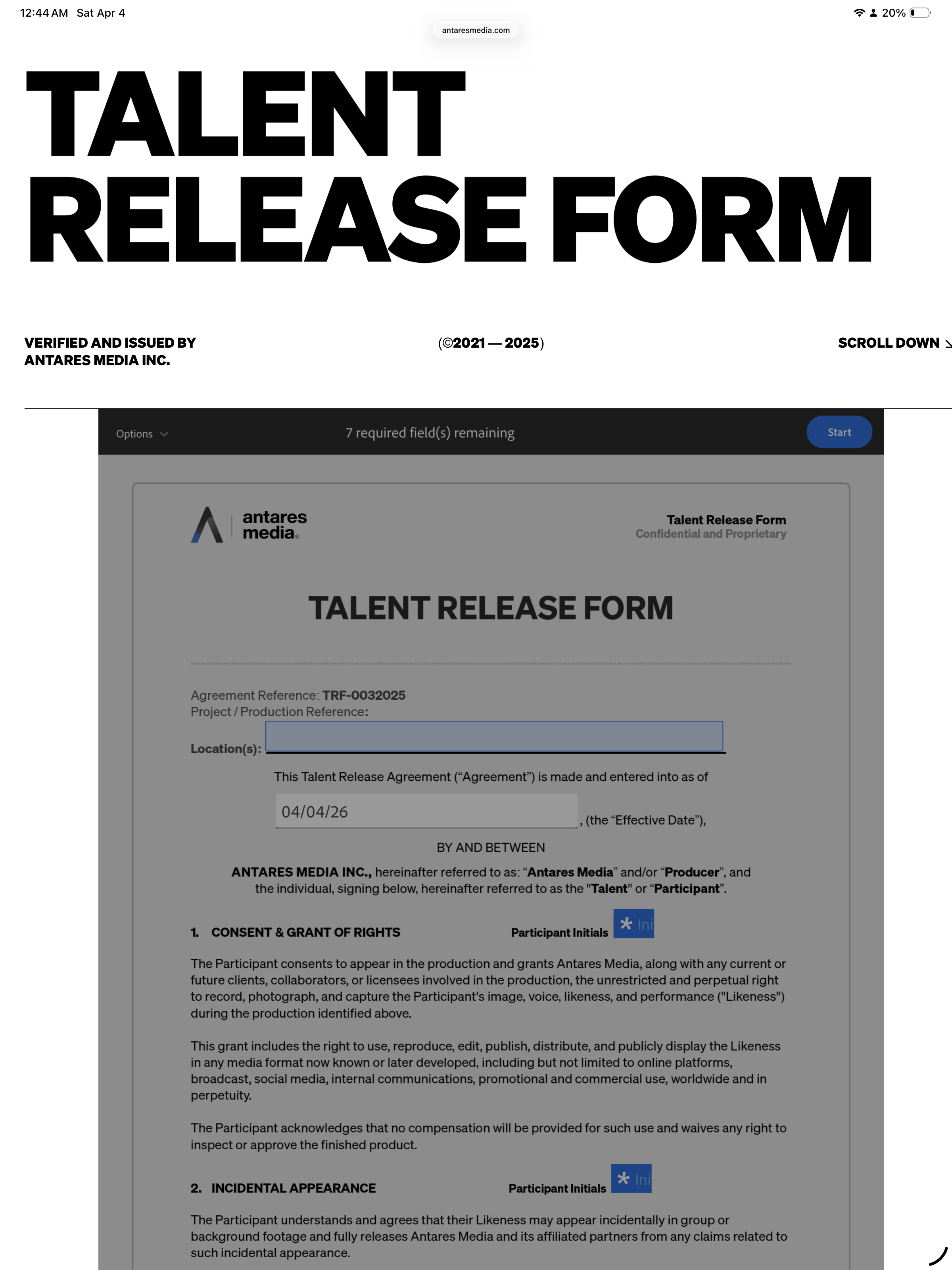 Click on the Production Form that you require.